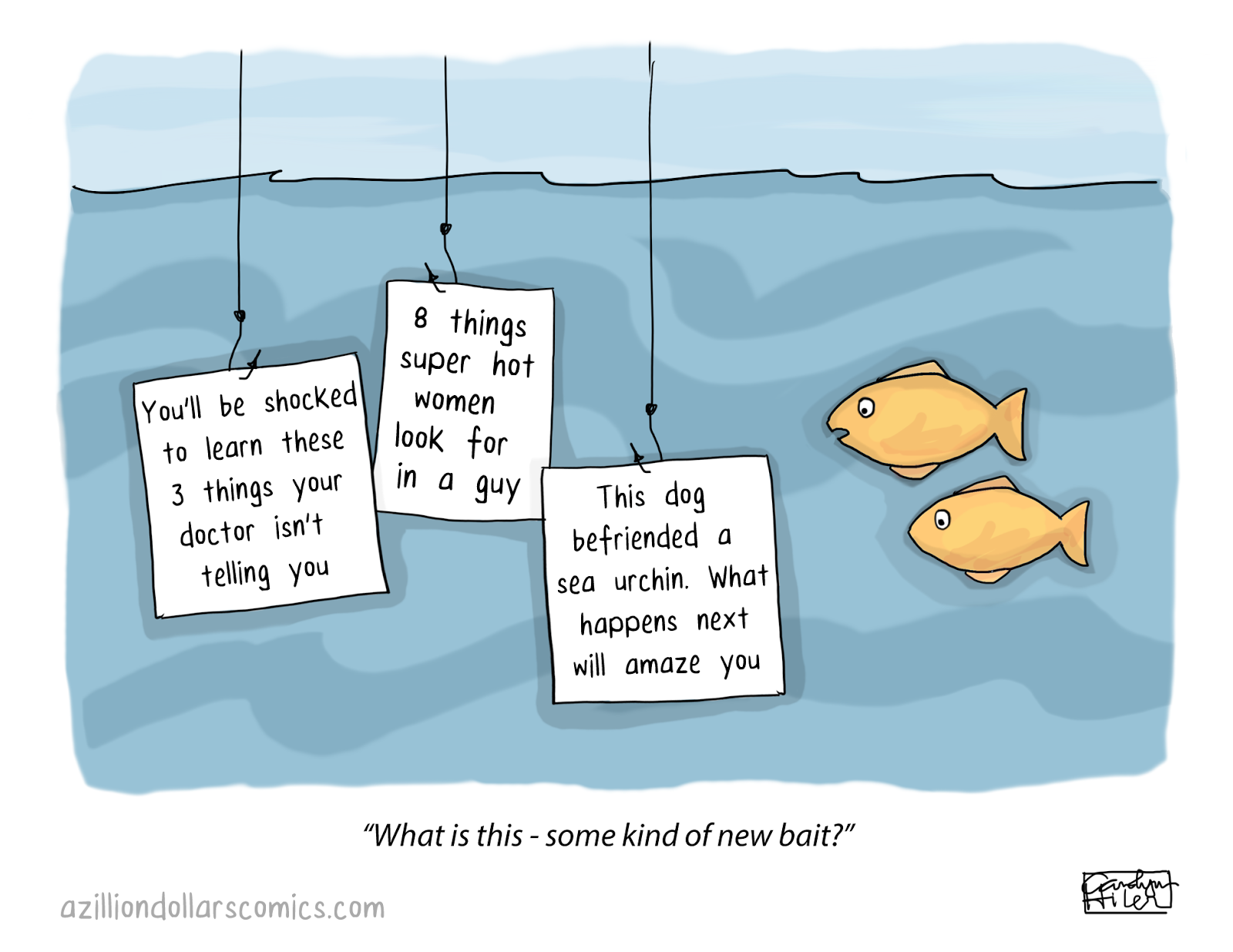 This is something that has baffled me since it came into existence, and azilliondollarscomics.com has done a fantastic job illustrating it here. It's obviously something that came around simply for the reason of: It works. People click in this crap. I do it, and you probably do too.